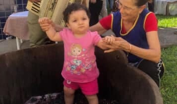 Com uma atmosfera de alegria que evocou as festas realizadas do interior, a equipe Alviazul juntamente com os funcionários organizaram atividades como a pisa da uva para 100 crianças
