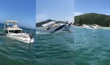 Lancha de luxo afunda no litoral de Santa Catarina com duas pessoas dentro