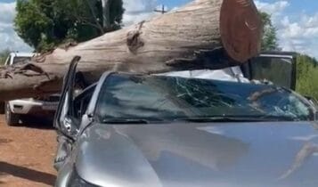 Família sobrevive após árvore cair sobre caminhonete em Maçambará