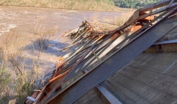 Parte da estrutura da Ponte de Ferro pode ser vista com a redução do nível do Rio das Antas