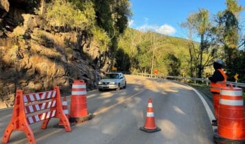 No km 190 da rodovia, do lado de Veranópolis, foram registrados pequenos deslizamentos de terra entre sábado, 08/06, e esta segunda, 10/06